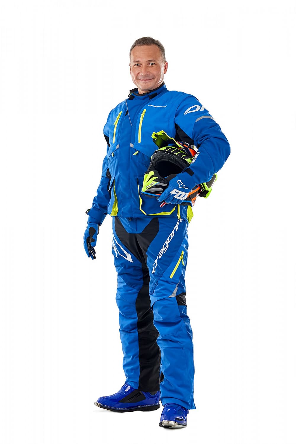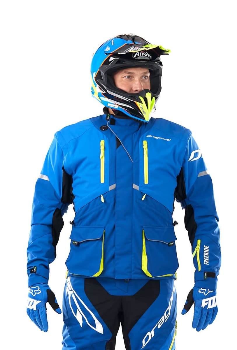 - Экипировка для катания на квадроцикле Куртка DRAGONFLY Эндуро Freeride DF Blue Yellow 2023